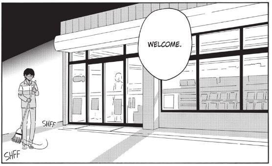 While the story is worth writing home about, the artwork is also not lacking or dull in any way. Erisawa uses the traditional black and white format of manga to their advantage here in this manga. Perhaps the most illustrative example of this is how the eerie look of the convenience store looks creepier in the almost pitch darkness of the night. Also, the “darkness” that manifests in the first page that goes on to morph into different forms is something that grabbed my attention throughout the book. On other pages, silhouettes played up with special screentones made scenes where someone’s life was forever changed way more dramatic. While the artwork looks simple, there is some really cool world-building that stands out thanks to emphasizing black in certain places and panels.