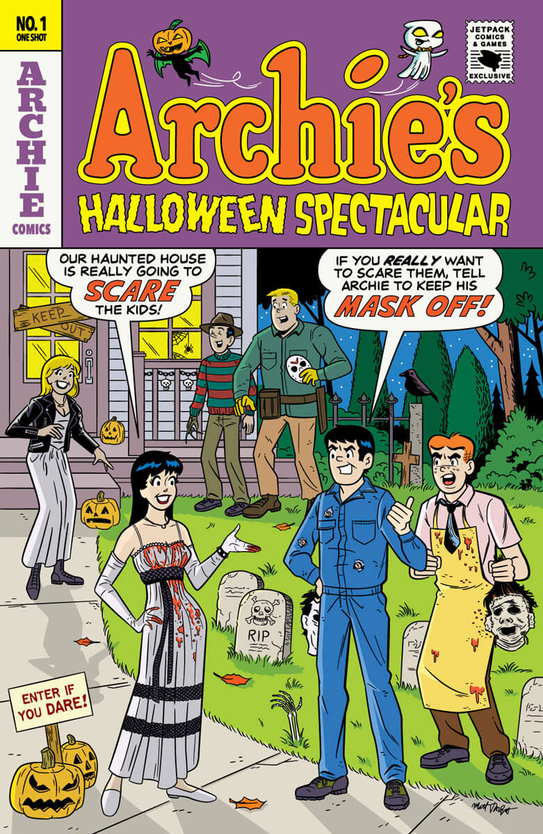 Meanwhile, Jetpack Comics has this Matt Talbot variant for Archie’s Halloween Spectacular #1. It’s limited to 250 copies, costs $12.99 each, and is available here.