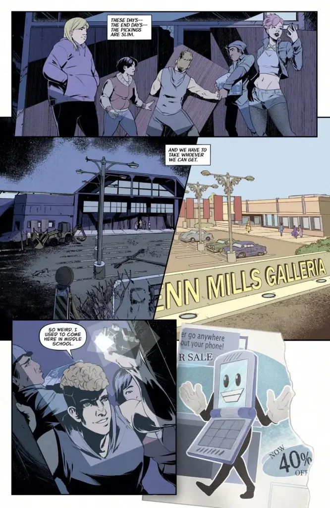 And those monsters are incredibly visually interesting thanks to the work of Stoll, who has thrown a skosh of Todd McFarlane into his playfully creepy wraiths, with their inky black trails of effluvia and their rotting, ghostly visages. Those creatures are creepy, but also visually interesting and even playful in their evil. His malls are big, blue-shaded, empty, and decrepit spaces. But they can also be beautifully sunlit and filled with happy memories. The balance here is great, and the character designs are a lot of fun and filled with variety. And the mystery that lies at the heart of the story – what are these creatures, and why do they require the blood of humans to maintain their life force – is intriguing enough to keep readers coming back to the second issue.