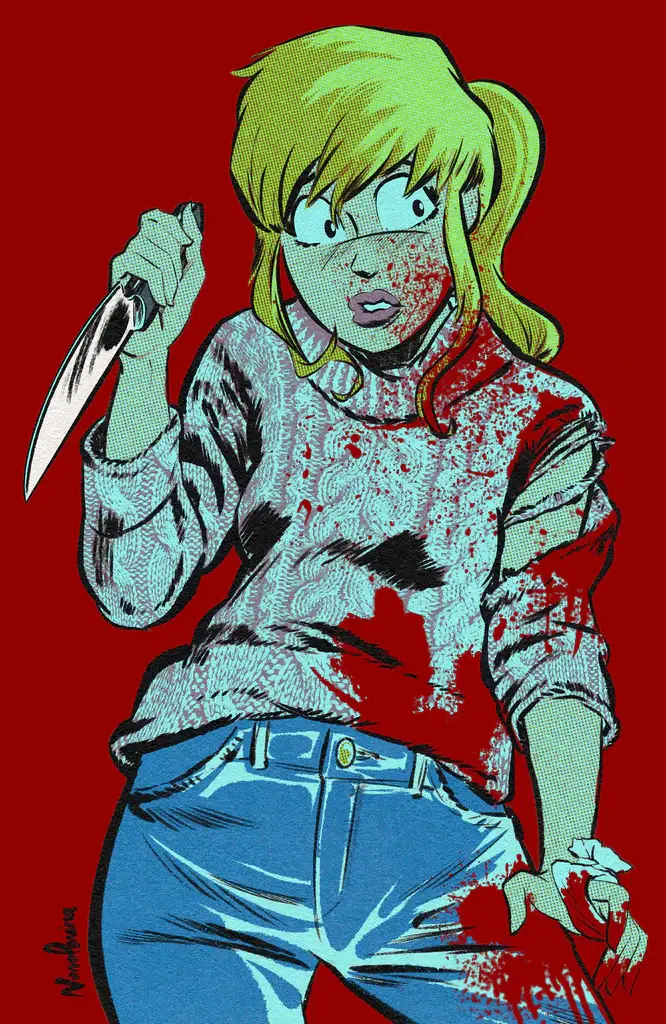 The final Stadium variant covers Betty: The Final Girl #1. Featuring a blood-spattered Betty with a knife, it’s limited to 250 covers and it, t00, had a blood-spattered metal variant which has sold out in a bundle at 50 copies. The regular pop-art variant is worth $14.99 and is available here!
