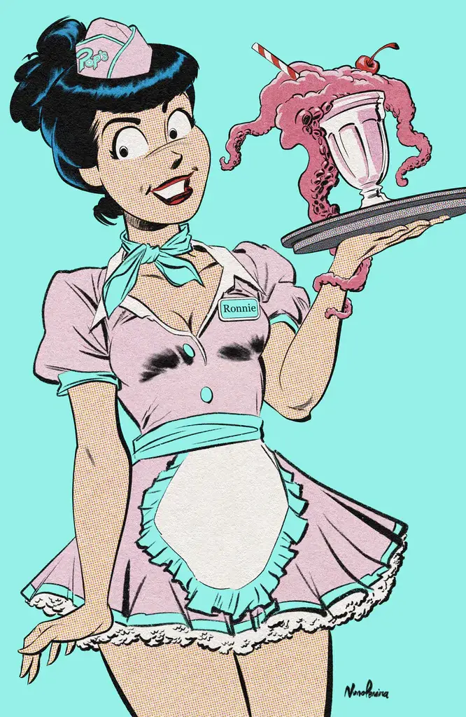 Stadium also has a variant for Pop’s Chock’lit Shoppe of Horrors #1. This Veronica cover is also by Pereira, and is a part of his Pop Art series. It’s also limited to 250 copies, with 50 printed on a metal blood-spattered cover. The metal variant is sold out but the standard variant is available at $14.99 here.