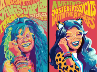 Mellow Fellow trading also offered up these Josie and the Pussycats rock poster variants for Betty and Veronica: Friends Forever: Rock And Roll #1 by Bill and Ben Galvan. Bill Galvan is offering up some of his leftover covers for $30 each plus shipping on his Instagram. There are 150 of each regular version in existence. The Josie cover has a metal tie dye cover limited to 50; 10 star foil variants; 3 each of the red and blue metal variants, 3 of the birchwood cover, and a single etched blue marble cover. The Valerie version sports the same number of regular covers, but has a silver metal variant that had a 30 print run, 10 gold foil copies, 3 apiece of an etched gold metal and etched black metal covers and birchwood covers, and 1 green marble printed cover. The Melody variant also had the same run of standard and variant covers, only with 3 Blue Metal covers. You can see the variants in action here.