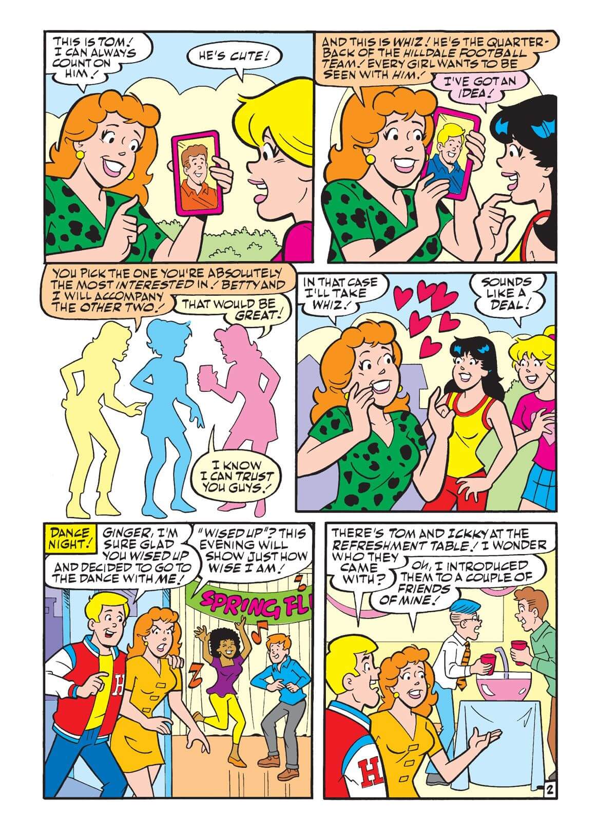 In this brand-new story, Ginger seeks the romantic advice of Betty and Veronica when she can’t decide which of three boys to invite to the upcoming Hilldale Spring Fling Dance. Betty and Veronica offer to help out by taking out the two guys Ginger chooses not to go with, but chaos soon sets in after she selects her date.