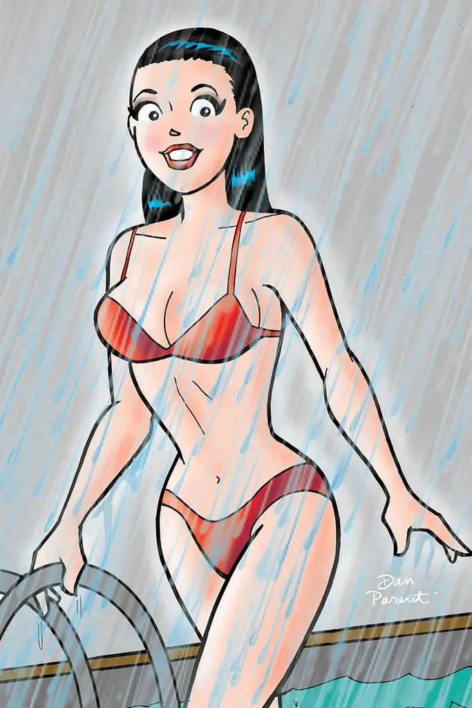The next cover is also by Parent and also covers Betty and Veronica: Friends Forever: Beach Party #1. It’s a parody of a memorable, Phoebe Cates-related scene in Fast Times at Ridgemont High. Each cover is limited to 200 copies, retails for $19.99 apiece, and came with a COA. They and the 25 metal variants available sold out during the preview.