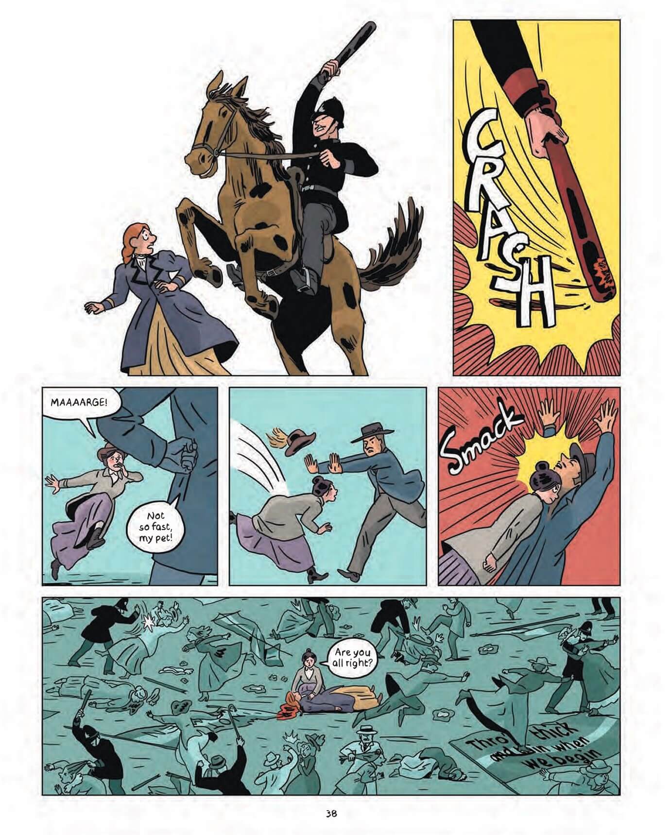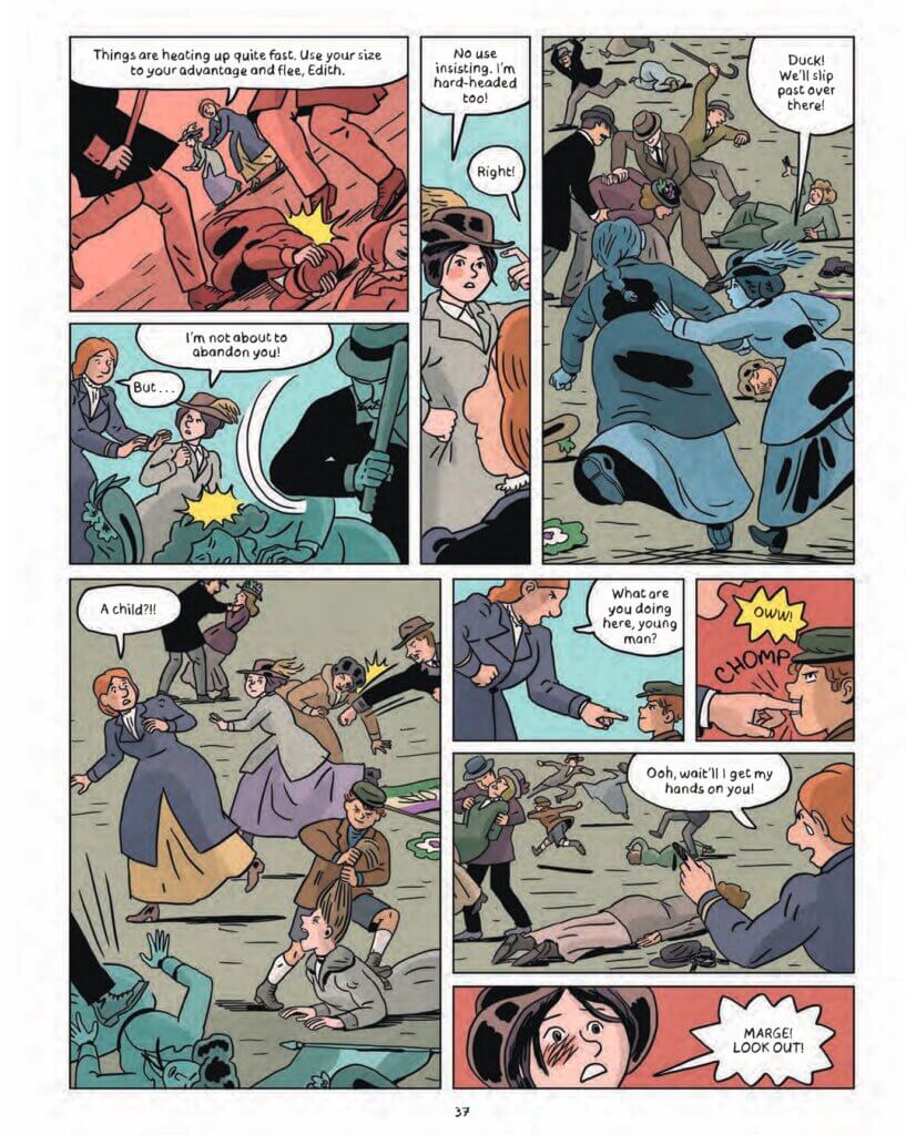 This exclusive six-page excerpt follows Edith Garrud as she and her fellow suffragists are caught in a violent clash with police officers and a misogynist mob.