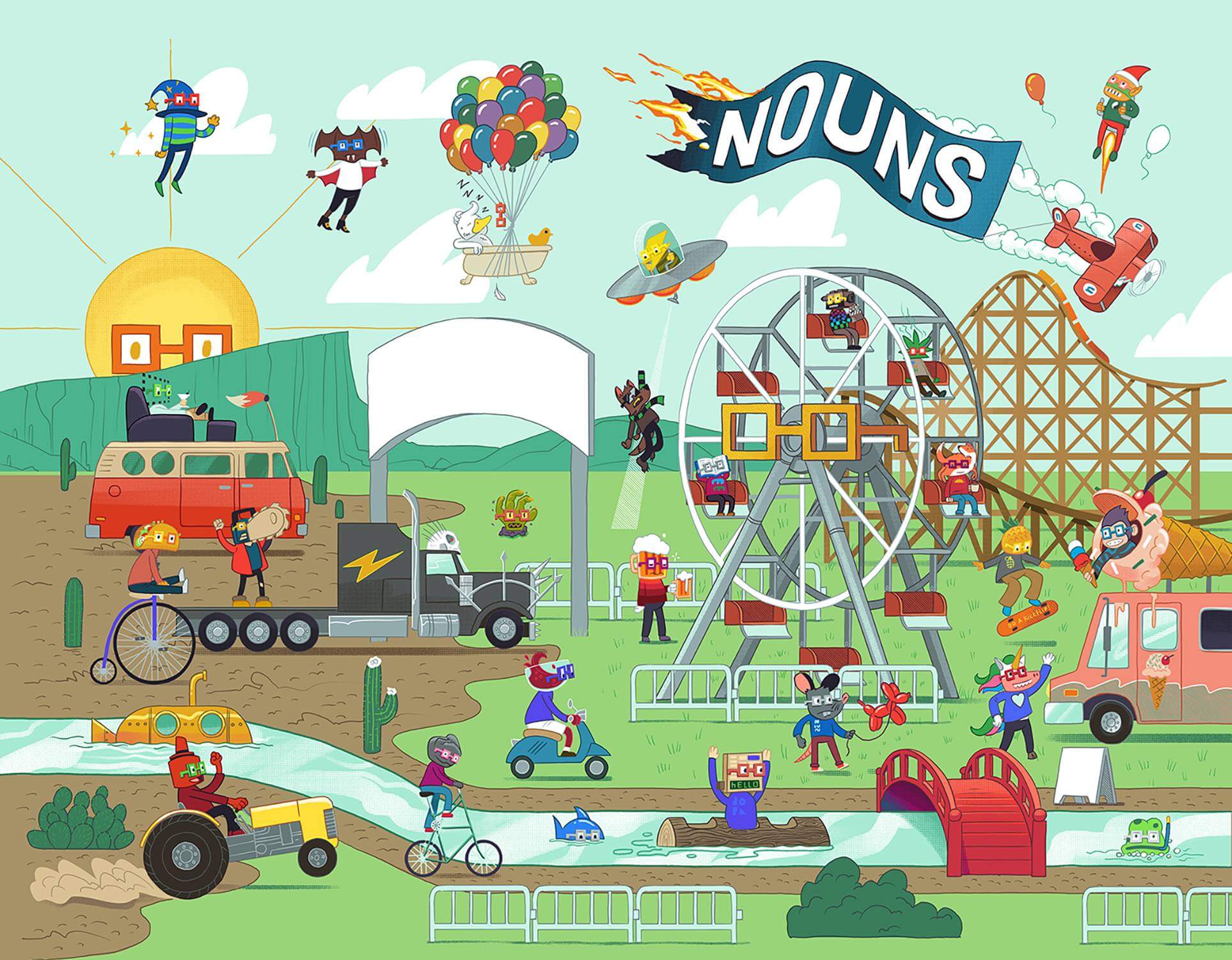 Meet the Nouns! Our introduction to this NFT project now in comic form is a road trip gone awry with several Nouns lost in the desert looking for Nountown. No food, no water, and no cell service. It’s a Noun’s nightmare. Fortunately, Nountown is a place that lives in your heart and mind, and before long these Nouns are in their proper paradise. But just who are the Nouns actually? Thanks to Otto Von Clippity-Clop, our Context Co-Ordinator and Ted Lasso lookalike, we learn all about the Nouns, their spiritual leader Uncle Bob, and Uncle Bob’s Great Big Nefarious (and perhaps Quite Delicious) Plan.