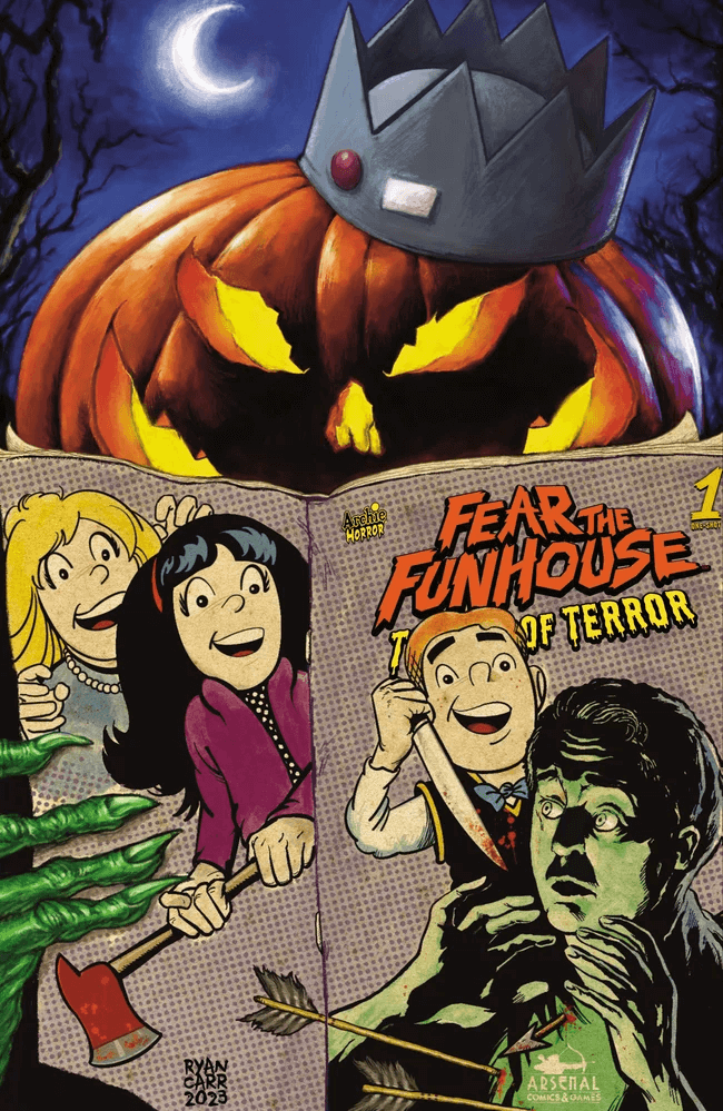 Arsenal Games and Comics has three new covers for sale. The first is Ryan Carr’s variant for Fear the Funhouse: Toybox of Terror #1, which is limited to 250 copies. You can get a plain virgin variant for $9.99, have it signed by Carr and issue writer Timmy Heague for $9.99 or get it remarked by Heague with an Archie character for $19.99. Pick your poison here.