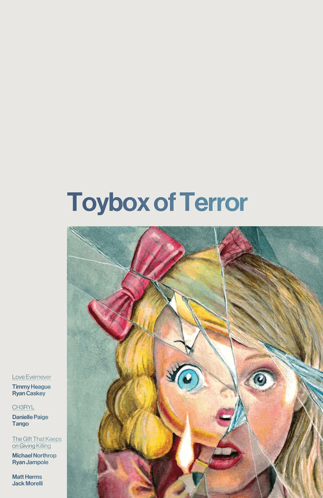 The next one is by Justin Frazier, and covers Fear the Funhouse: Toybox of Terror. A parody of Taylor Swift’s  cover for Midnights, it’s limited to 250 copies, standard prints go for $9.99, as do issues signed by contributor Timmy Heague. One signed by Frazier goes for $14.99. One signed by Heague and Frazier goes for $14.99. All variants are available here!