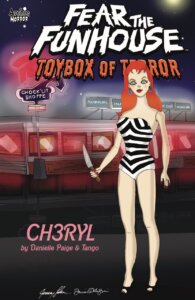 Danielle Paige offers up this Barbie-inspired take for Fear the Funhouse: Toybox of Terror. Drawn by Jeremy and Daniel Lehrer, It’s limited to 300 copies, is $9.99 unsigned and $19.99 signed by the artists, Paige and Heague. Both are available at Paige’s official shop.