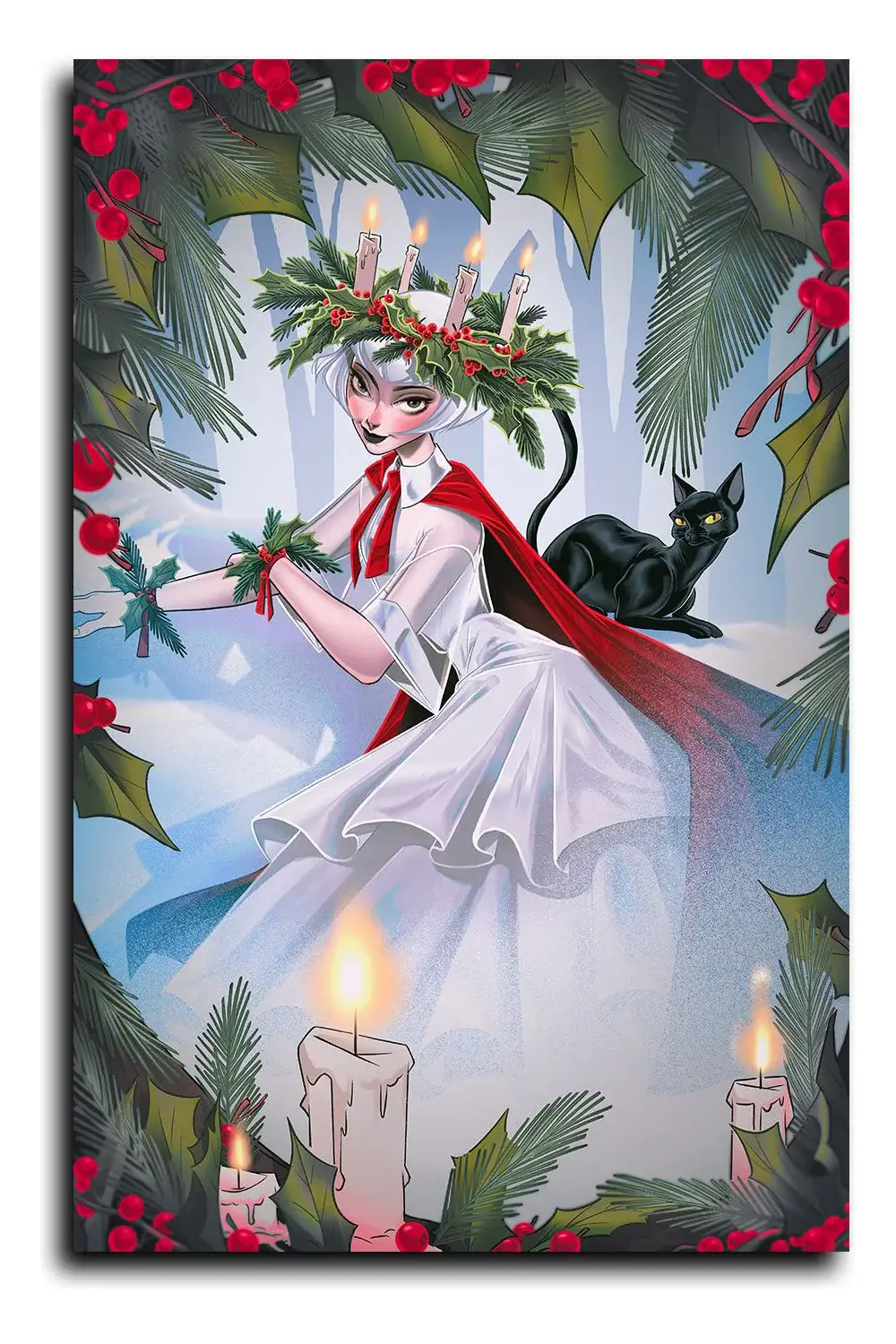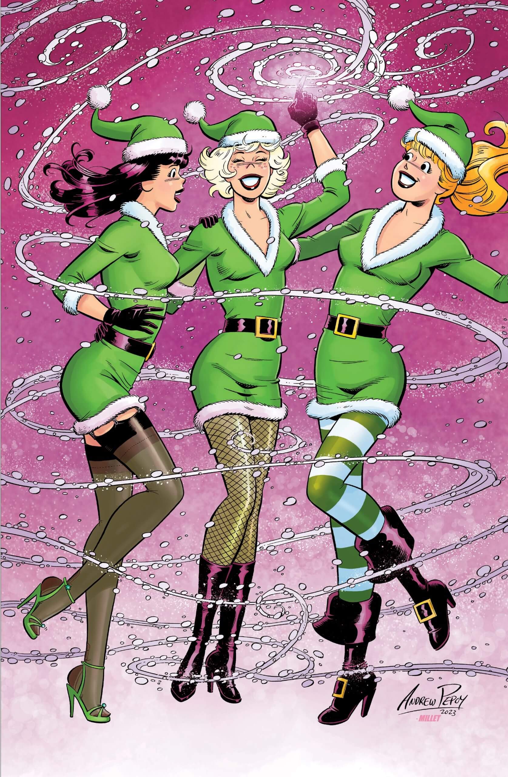 Stadium also has this Laura Braga variant for Archie Christmas Spectacular #1. This cover is a tribute to Dan DeCarlo’s Archie’s Christmas Stocking cover from 1993, is limited to 250 copies in its standard virgin variant, costs $19.99, and is available here; a 20 copy virgin metal variant run has already sold out; they retailed for $59.99 in a two-cover pack with the standard cover.