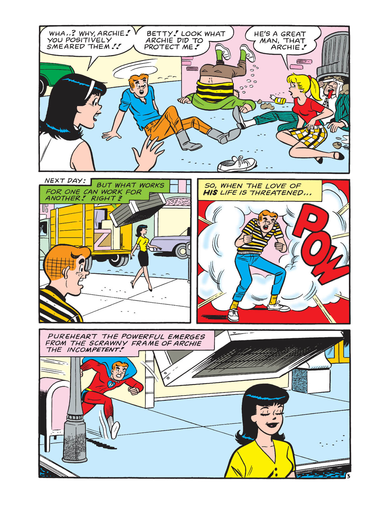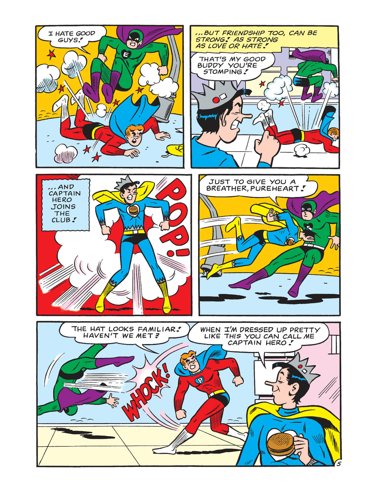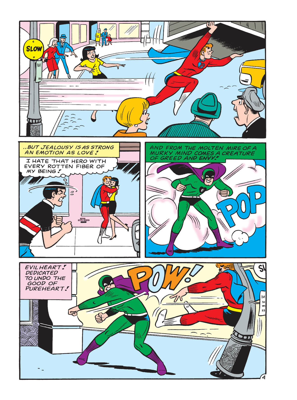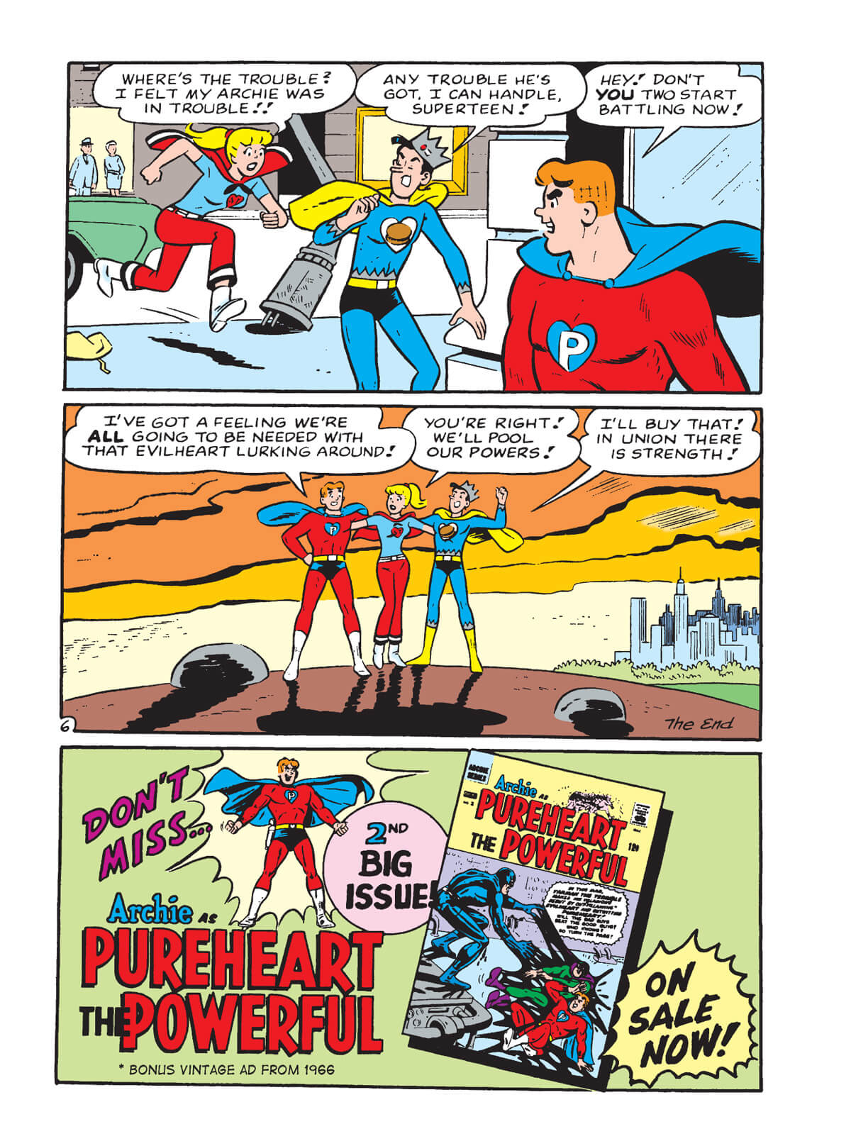 Also included below is the vintage Super Teens story featuring Pureheart the Powerful, Power Teen, and Captain Hero all leaping into action together to stop some crooks.