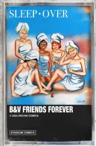 Stadium Comics is back with three homage variant exclusives. First, there’s this tribute to the cover of the Go-Gos album Beauty and the Beat by Bill Galvan, which covers Betty and Veronica: Friends Forever Sleepover #1. Only 250 copies exist of the variant, with 20 metal variant cassette cover replicas extent. The metal version sold out as part of a two-issue pack at $59.99. You can buy a regular variant for $14.99 here!