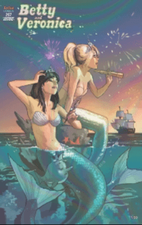 Stadium also has Galvan’s homage to The Princess Bride, a variant for Archie’s Valentine’s Day Spectacular #1. There are multiple buying options here; the regular variant is limited to 250 copies; the foil variant with an unmasked Archie to 20, and the virgin foil to 15. Both the foil and virgin variants have sold out; the standard is available here; for $14.99.