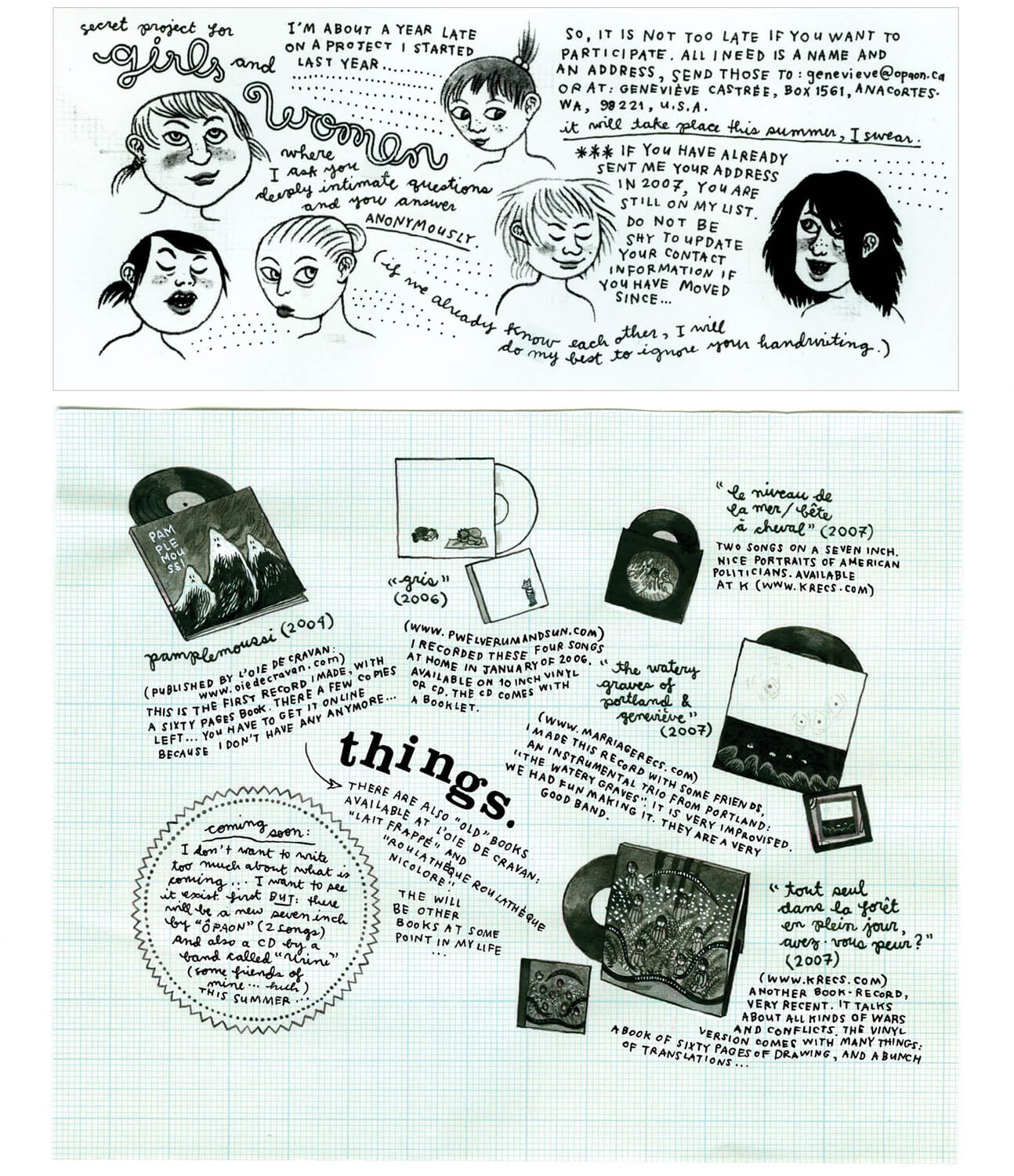 I became interested in artful comic books and strange, beautiful, punk independent music in the early to mid-2000s (for I wanted to make comic books and punk music, and other kinds of art), and so it was by luck, chance or providence that I became aware of the artwork and music of the Quebecois artist Geneviève Castrée.