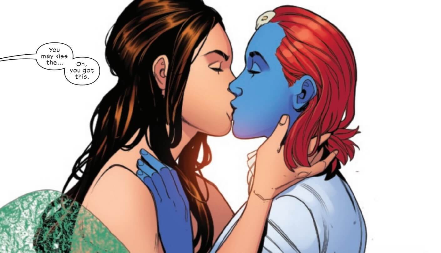 Aside from “Who would win in a fight?”, no one’s debate gets comic fans more heated than the question of whether or not superheroes should marry. In this revival of their column, Rebecca Henely-Weiss and Kayleigh Hearn take a trip to today’s spinner racks and look at the most recent times comic companies took the plunge and got their characters hitched! Did we like the couple? Did we like dresses and tailored women’s suits? And more importantly … will the marriage last? Today we look at the wedding of Mystique and Destiny.
