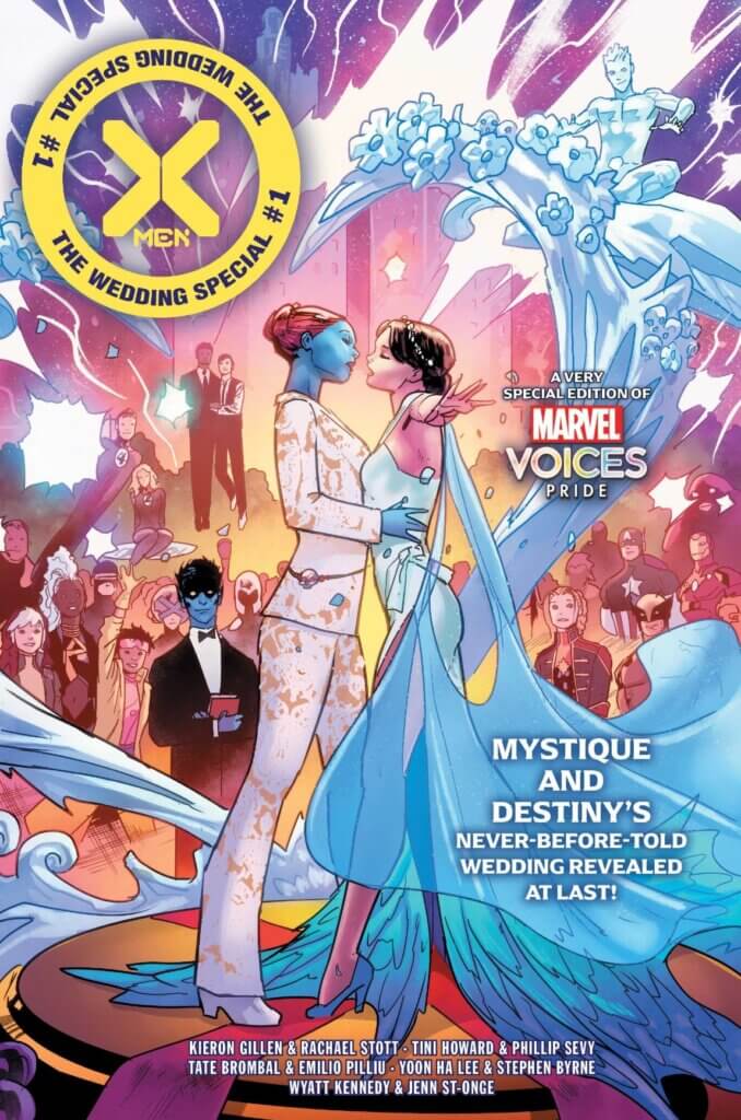 Rebecca: When Kayleigh and I were writing this column back in 2016-2019, we often lamented how we didn’t have many options for covering weddings with two brides. While we did take a look at the wedding of Batgirl side character Alysia Yeoh to her wife Jo, it’s still really awesome to be covering the wedding of Destiny and Mystique. These characters are classic lesbian comics representation, and it’s nice to see them celebrated as such.