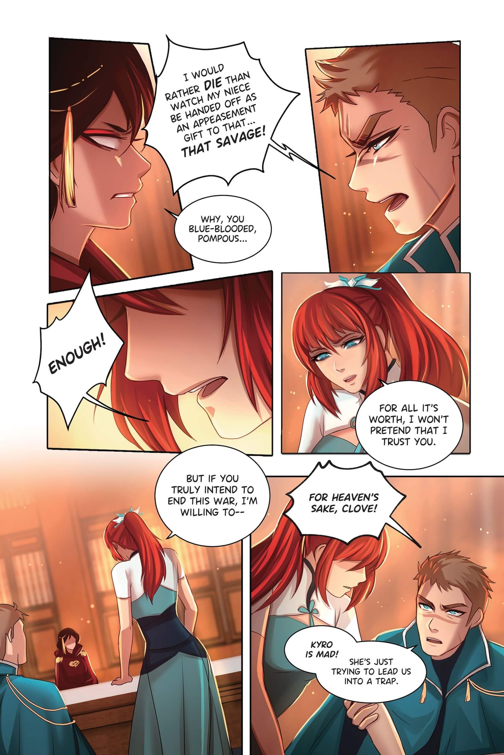 To save her people, Princess Clove will have to do the unthinkable—marry her greatest enemy! Clove is the last remaining heir of her Cerulean Dragon clan, fighting in a seemingly endless 300-year-war against the vast Crimson Empire. With no end to the war in sight, Clove agrees to leave her sheltered homeland in favor of a political marriage with the heir to the enemy Crimson Dragon clan, Prince Kyro.