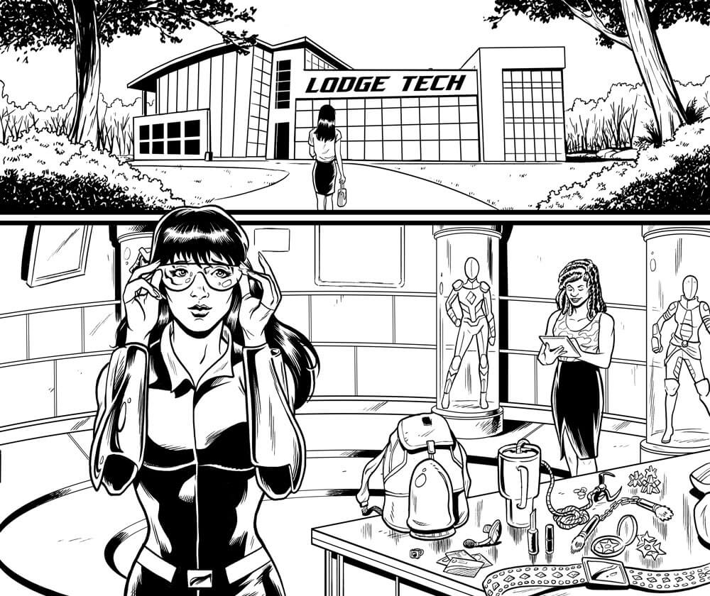 Let issue illustrator Brent Schoonover elaborate: “Veronica and her loyalty to her father and Lodge Industries was a really great dynamic to play with. We clearly see how Mr. Justice and his actions to push back on the Lodge agenda and disappoint her, but also motivate her to try and do what she thinks is best for Riverdale regardless of who stands in her way. Amanda did a great job of writing a really fun superhero story with intrigue and action. Drawing it was a blast!”
